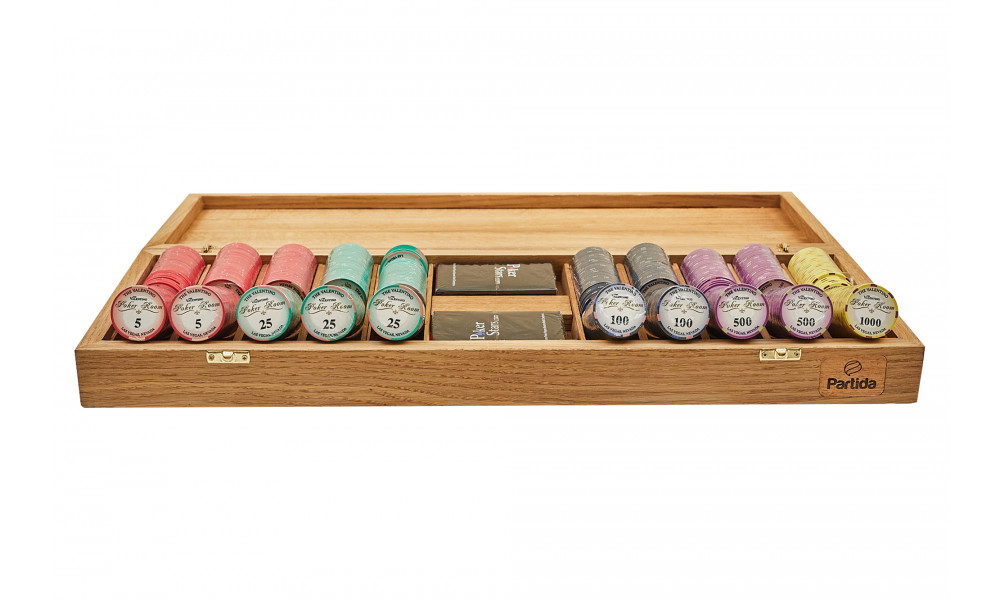 Набор для покера Valentino Poker Room Ceramic на 500 фишек в дубовом кейсе, Partida