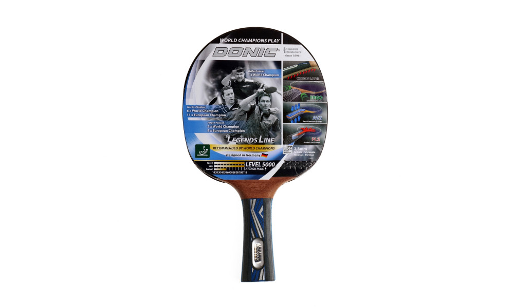 Ракетка DONIC "LEGENDS 5000" рассчитана на тип игры Атака+. Для покрытия используется накладка Liga, а толщина губки 2,3 мм. Ракетка одобрена Международной федерацией настольного тенниса ITTF. AVS Anti-Vibration-System (AVS) — это амортизирующая система, разработанная Schildkröt. Благодаря AVS улучшается контроль мячика и снижаются вибрации, вызванные энергией удара. Два амортизирующих мягких слоя находятся между ручкой и её покрытием. В результате AVS повышает точность ударов как в оборонительном, так и в наступательном стиле игры. PLS Power Light System (PLS) - это система, снижающая общий вес рукоятки и переносящая центр тяжести на центральную часть благодаря полой конструкции. Таким образом, во время игры ваши удары будут гораздо быстрее и мощнее, а ощущение усталости придёт гораздо позже. ERGO Ручка ERGO (эргономичная) анатомически точно прилегает к руке и помогает игроку чувствовать себя с ракеткой единым целым! Закругленная форма ручки позволяет избежать давления в руке и делает процесс игры более приятным и комфортным. Carbon Layer Карбоновый слой в основании рукоятки делает ракетку жёстче и увеличивает зону восприятия. Ракетки из карбона производят меньше вибраций и повышают базовую скорость. Благодаря этому, создаётся более жёсткое и прямое ощущение удара, в результате - высокая мощность и точность. Отлично подойдёт для атакующих игроков с высокими требованиями. Liga Универсальная резиновая накладка Liga создана по технологии SR (Starter Technology) из каучука. Она достаточно цепкая, что увеличивает контроль над мячиком во время игры, а также долговечная из-за прочности материала. Благодаря этим свойствам вы сможете играть как в атакующей позиции, так и в защитной.